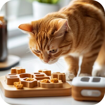 Mentální stimulace je stejně důležitá jako fyzická aktivita. Kočičí hlavolamy, kde musí kočka pracovat na získání pamlsku, pomáhají udržovat její mysl aktivní.