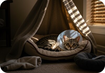 Zotavení trvá obvykle 7–10 dní – většina koček se během této doby vrací do běžného režimu. Pokud ale zaznamenáte komplikace, neváhejte vyhledat veterinární pomoc.